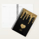 Start the new year right with this glammed up planner for 2021. Dripping gold paint and gold glitter with a gold glitter heart on a black background makes an elegant statement. Add you monogram and name to make it your own