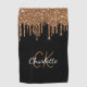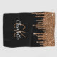 A black background decorated with faux golden glitter drips, paint dripping look. Personalise and add a name, your monogram initials. The name is written with a hand lettered style script.