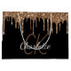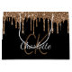 A classic black background with faux gold glitter drips, paint dripping  look. Personalise and add a name and monogram initials. The name is written with a golden modern hand lettered style script.  Golden and white letters.  Perfect for birthday, bridal showers and baby showers.