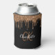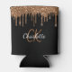 Black gold glitter drips monogram sparkle can cooler