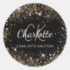 Black gold glitter dust monogram initials name classic round sticker