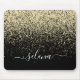 custom monogram first name in a fancy signature sytle on black gold mouse pad.