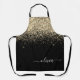 Black Gold Glitter Girly Monogram Name Apron