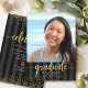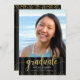 Be proud, rejoice and showcase this milestone of your favourite grad! Send out this stunning, modern, sparkly gold typography script against a black striped background with gold dots, personalised photo invitation for an event to remember. Personalise the custom text with your grad’s name, school and class year. Event venue invitation text is on the back. Guaranteed to add stylish fun to her special occasion!