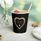 Black and gold glitter heart wedding / bridal shower paper cup. Personalise it with your event details.