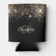 Black gold glitter monogram name chic sparkle can cooler
