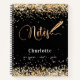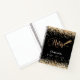 A chic black background. With the text: Notes and decorated with a feather pen and faux gold glitter, sparkles. Personalise and add a name and text (or delete)