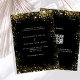A modern, elegant wedding invitation. Black background decorated with faux gold glitter sparkles. Personalise and add your names and wedding details. White coloured letters.