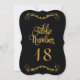 Elegant calligraphy script typography in trendy yet timeless black background with gold glitter with customisable table number for an elegant formal wedding reception or other event. Scrollwork top and bottom was made from ornate vintage printer's ornaments and finish off the design. Created by internationally licensed artist and designer, Audrey Jeanne Roberts, copyright.