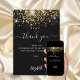 A black background, decorated faux gold glitter, sparkles. Large hand lettered script and the text: Thank You. Personalise and add your thank you note and name.