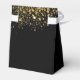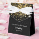 A stylish black background decorated with faux gold sparkles. With the text: Wedding and Thank You written with a modern hand lettered style script. Personalise and add your names and the date.