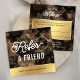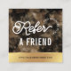 Elegant black and gold business Refer a Friend card design with trendy fonts, faux gold elements and luxurious gold glitter effect background. Create unique referral discount cards for your beauty salon, spa, nail studio, makeup and hair salon or any other business using this luxurious faux gold Share The Love 2.5x2.5" square card design.