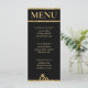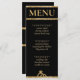 Black and gold glitter stripe wedding reception menu. Personalise the meal list and names.