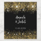 A classic black background decorated with faux gold glitter, sparkles. Personalise and your names and the wedding date.