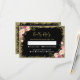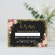 Black Gold Glitters Pink Floral Wedding RSVP Reply Card