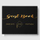 A guest book for a glamourous, elegant and modern graduation party. A chic black background. The text: Guest Book is written with trendy faux gold letters. The text: Graduate 20xx and the name are written with golden letters. Decorated with a modern abstract cap topper. Template for your text on the spine.
