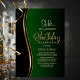 Invite your friends and loved ones with this modern black, gold and green surprise birthday party invitation. The customisable text area in this invitation template allows you to effortlessly include all the necessary details for your special birthday celebration, including the date, time, venue, and RSVP information. A variety of paper types and corner styles are available for your unique invitations, along with the option to download if you prefer a digital format.