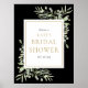 An elegant black and gold bridal shower welcome sign featuring botanical greenery eucalyptus leaves. Designed by Thisisnotme©