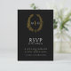 Black gold hand drawn leaf monogram RSVP wedding Card