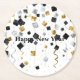Black Gold Happy New Year Confetti Round Paper Coaster