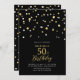 Black & Gold Hexagon Confetti 50th Birthday Party Invitation