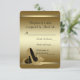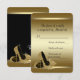 Gold glitter high heel shoe RSVP response card with elegant black and gold background. These beautiful black and gold high heel shoe response cards are perfect for a woman's birthday party, or other special event and can be customised with your text in the font style and colour of your choice. This is a printed design with no real glitter.