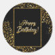 Black Gold & Jewel Leopard Classic Round Sticker. Design with faux gold glitter and jewels. Perfect for an elegant and glamourous celebration. The Happy Birthday font has embedded with diamonds.