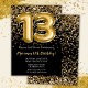 Elegant black and gold 13th birthday party invitation for a 13 year old girl with elegant script writing gold font design and fun foil balloons.