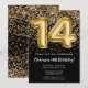 Black Gold Kids Girl 14th Birthday Party Invitation