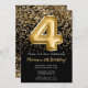 Black Gold Kids Girl 4th Birthday Party Invitation