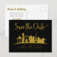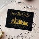 Have your guests eagerly awaiting their invitation with this fun Las Vegas strip silhouette black and gold wedding Save the Date postcard.