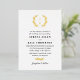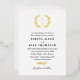 Elegant wedding invitation in a gold foil and black typography design with a laurel wreath monogram and beautiful fonts. Typography wedding invitation with a greenery monogram and beautiful fonts. Monogrammed gold foil wedding invitation with a stylish typography design and greenery.