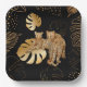 Black gold leaves leopard paper plate