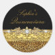 Quinceanera Sticker. Gold & Black with Leopard print. Exclusive Zazzle. Customise with your own details. PLEASE NOTE all flat images! They Do NOT have real gold, Diamonds or Jewels!!