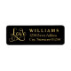 Luxurious gold calligraphy reading "Love" with a graceful flourish stands out against a dramatic black background on this elegant wedding return address label. The family name and address appear in refined gold capital letters for a glamourous finishing touch. All text is easy to customise.