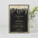 Black gold luxury glitter drips wedding invitation