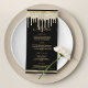 This luxury, modern, minimalist black and gold glitter drips border Wedding Menu Invitation is inspired by the simple and elegant, but with subtle hints of contemporary influence. It features a glam gold glitter drips border on a simple black background. This classic and luxurious design will be a big hit with all your guests. All designs are printed.