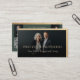 Make a lasting impression with our prestige luxury realtor law firm gold & black luxe business card, designed for two realtors who value sophistication and style. The front features a full photo layout framed with an elegant faux gold corner accent along the top and right edges, complemented by your company name and tagline placed over a subtle black transparent overlay for easy readability. The reverse side is thoughtfully designed for two agents, allowing you to showcase individual photos, QR codes for direct contact access, and essential business details such as address and phone number placed neatly in the center. A sleek faux gold stripe completes the luxurious design. Fully customizable, this template lets you personalize colors, fonts, images, and details to match your brand perfectly. Ideal for real estate professionals, law firms, and business executives seeking a refined, high-end look, this card combines modern elegance, functionality, and timeless sophistication in one striking design. Design and layout by ©Moodthology Papery
