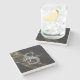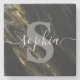 Black Gold Marble Monogram Script Initial Custom Stone Coaster