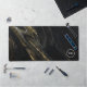Add your logo or graphic and take your workspace to the next level with this beautiful and comfortable desk mat mouse pad! This desk mat design features a black and gold marble background with your logo or graphic in two corners. Test it out and see how it looks. Details: 3mm neoprene, polyester top, anti-slip backing, durable hemmed edge, and measures 31.5" x 15.5" inches.