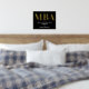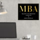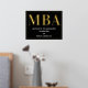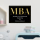 An MBA graduation party welcome sign poster with gold foil, white text, and a black background. Simply add your information, add this poster to your cart, and celebrate this major accomplishment.