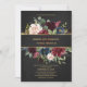 Black Gold Merlot Navy Floral Blooms Wedding Invitation