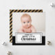 Black and gold Christmas holiday photo greeting card with text, "Wishing you a Merry Little Christmas."
