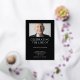 Gold foil memorial service invitation, featuring a photo of your loved one and a tasteful typography in a combination of white and gold foil against a black background.