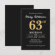 Black Gold Minimalist Modern Simple 63rd Birthday Invitation