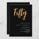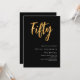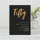 A modern, stylish invitation for a 50th birthday party for both him and her. Classic black background and the word Fifty written with large faux gold letters. Personalise and add a name and party details. White text.