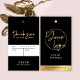 Stylish black and gold clothing label design with elegant script fonts, minimal layout and faux gold effects, perfect to finish off your boutique's packaging design. This clothing price tag allows you to add your business details and logo and includes size, price and style table as well as a thank you message. ***This hang tag doesn't come with pre-made holes or stings. The holes are simulated in the photos and artwork.***