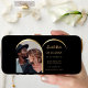 On front: Add your own vertical size photo. Faux gold photo arch frame. A black background, golden text. Personalise and add your names and the date.