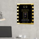 Modern Chic, Monogram at top in foil laurel wreath - add photo to the gold lined frame - simple elegant way to for a job well done, either an employee, student, teacher - who ever is having a bragging party for a job well done - all text is customisable - so it can also be used for an anniversary or birthday poster if you wish. black background colour can easily be changed.