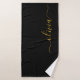 Black Gold Modern Script Girly Monogram Name Bath Towel